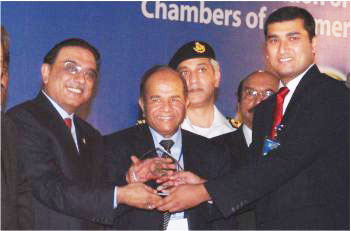 with Senator Haji Ghulam Ali, Mian Mansha , Daud Razzaq (Deskon Engineering) Chairman (T.D.A.P.) , and Vice President Gujranwala Chamber Sohail Yousaf. |